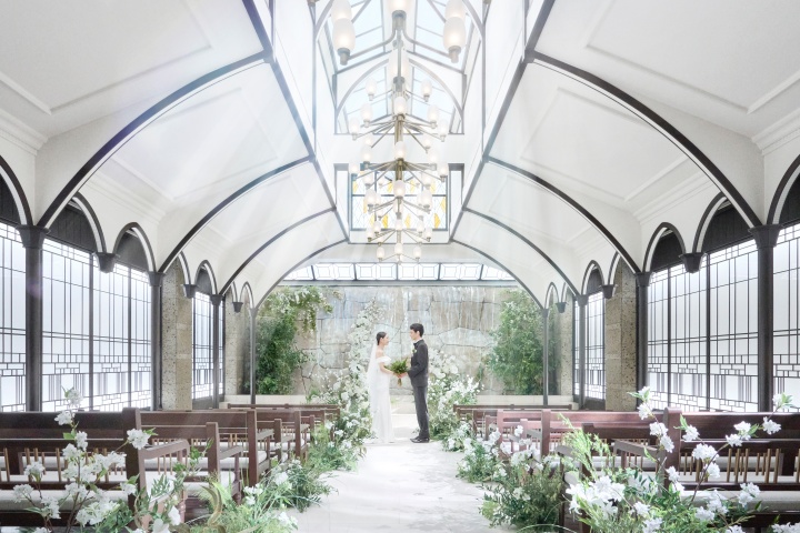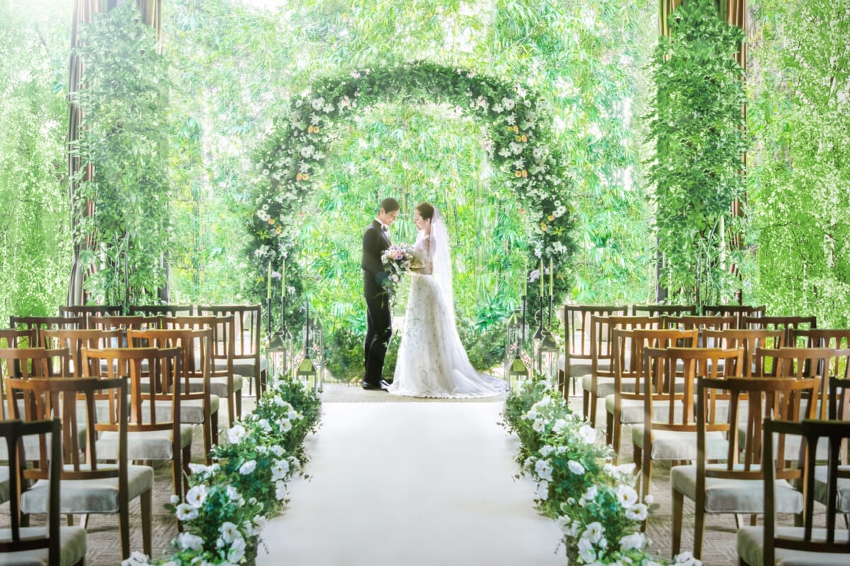 木漏れ日に包まれているような開放感溢れる上質でクラシカルな館内と美しい日本庭園が広がる結婚式場。